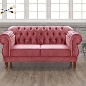 Sofá 2 Lugares Duquesa Chesterfield Decoração Recepção Rosa