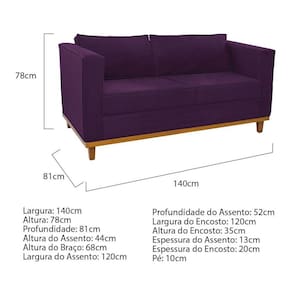 Sofá 2 Lugares Europa Suede Roxo Doce Sonho Móveis