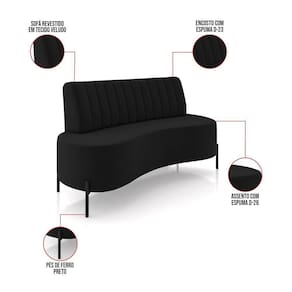 Sofá 2 Lugares Living 135cm Pé Ferro Pto Maraú Veludo Preto K01 - D'rossi