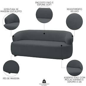 O Sofá 2 Lugares Living Orgânico Sala de Estar 140cm Conka F05 Veludo Grafite, da Mpozenato é um produto que combina qualidade, beleza e conforto.