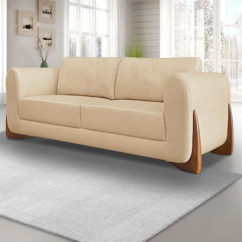 Sofá 2 Lugares Luxo Linho 1,60M pés em Madeira de Jequitibá - Amarelo Ouro