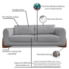 Assento: Fixo com percintas Elásticas Italiana, Molas Bonel e espuma HR28 + Plumante em Silicone