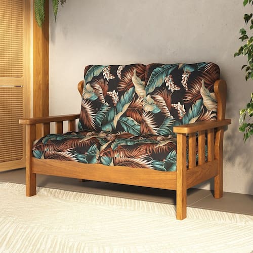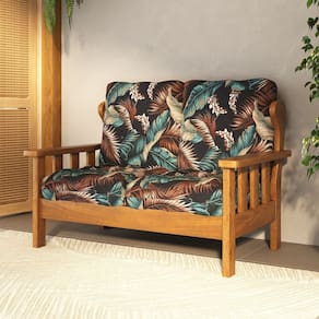 Características: Estrutura de madeira Densidade Da almofada: D33 Encosto e assento: possui possui 4 almofadas, 2 assentos e 2 encostos Tecido 60 Algodão e 40 Poliéster Peso suportado: 100kg Altura do chão até o assento: 35cm