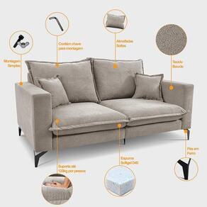 Sofá 2 Lugares Modular Boma. 1,70m Boucle Sofá Inbox Bege Claro