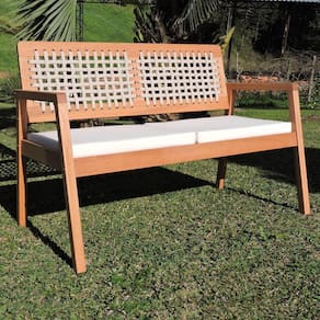 Os Sofás 2 Lugares/Namoradeiras Garden são produzidas madeira de eucalipto, encosto em corda trançada e assento estofado em Tecido Acquablock, que torna em um produto único, com um design moderno, deixando sua casa cada vez mais bonita! Produto simples e atual, podendo ser utilizado em diversos ambientes. Os Sofás 2 Lugares/Namoradeiras Garden são uma ótima opção para as áreas de piscina, jardins, varandas ou até mesmo churrasqueiras.