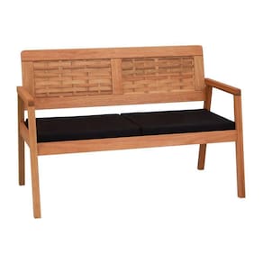 Sofá 2 Lugares/namoradeira Garden Madeira Maciça Assento Estofado Encosto Trançado Madeira - Natural Acquablock Preto