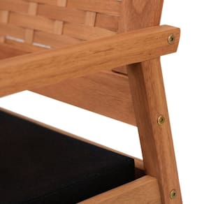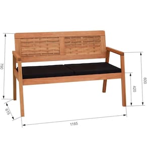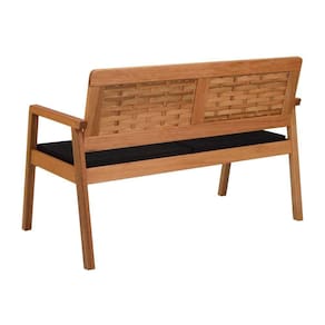 Sofá 2 Lugares-namoradeira Garden Madeira Maciça Assento Estofado Encosto Trançado Madeira - Natural Acquablock Preto