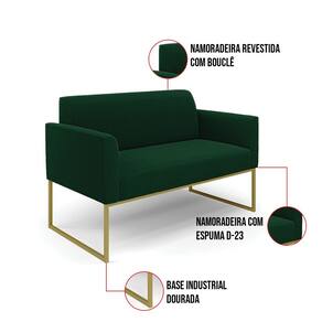 Sofá 2 Lugares Namoradeira Industrial Dourado Marisa Bouclê D03 - D`Rossi - Verde