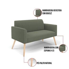 Sofá 2 Lugares Namoradeira Pé Palito Natural Marisa Bouclê Pistache D03 - D'rossi