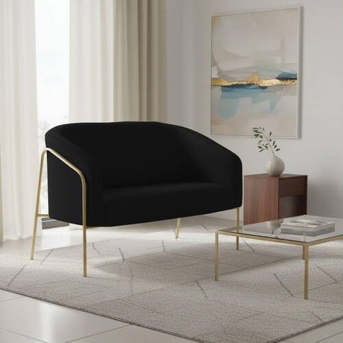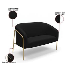 Sofá 2 Lugares Namoradeira Stella Base Industrial Alta Dourada Sintético Pu Preto D03 - D'rossi A Namoradeira Stella Base Alta Sintético PU Preto é um móvel que une design moderno, conforto e sofisticação, ideal para compor salas de estar, recepções e ambientes decorativos. Seu formato elegante e estrutura elevada valorizam o espaço, trazendo leveza e requinte à decoração. Produzida com estrutura em madeira de eucalipto reflorestado e base em aço tubular na cor dourada, garante durabilidade, estabilidade e resistência. O assento em espuma D-26 proporciona firmeza e conforto, enquanto o encosto e os braços em espuma D-23 oferecem um toque macio e ergonômico, se adaptando perfeitamente a diferentes estilos de decoração, do clássico ao contemporâneo. A namoradeira é perfeita para quem busca um sofá pequeno e sofisticado, unindo beleza, qualidade e conforto. O acabamento refinado e o design atemporal fazem dessa peça uma excelente escolha para transformar o ambiente com elegância e estilo. Dimensões do Produto: