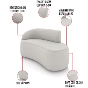 O Sofá 2 Lugares Orgânico Morgan de 140 cm, é a combinação perfeita de conforto e estilo. Com uma estrutura robusta de madeira de eucalipto e MDF, este sofá garante durabilidade e resistência. Os assentos e encostos são fixos, o encosto é preenchido com espuma D-20, proporcionando suporte ideal para suas costas, enquanto o assento com espuma D-23 oferece uma experiência de assento firme e aconchegante. O elegante revestimento em Veludo na sofisticada cor Cinza é uma escolha que combina conforto com um toque de modernidade. O design orgânico remete às formas encontradas na natureza como ondas, folhas ou conchas que além de se moldarem ao corpo humano, evocam uma sensação de calma e equilíbrio. Seu formato curvo e sem braços traz um toque de modernidade, permitindo que o sofá se encaixe harmoniosamente em diversos estilos de decoração, desde o minimalista até o mais ousado. A fluidez das linhas cria um ambiente acolhedor e convidativo, perfeito para qualquer ocasião. As sapatas plásticas são pequenas proteções colocadas na base dos pés do sofá para evitar que eles risquem ou danifiquem o chão. Além de proteger o piso, essas sapatas ajudam a distribuir o peso do sofá de maneira mais uniforme. Seja para receber amigos, relaxar após um dia longo ou simplesmente adicionar um toque de elegância ao seu lar, o Sofá Orgânico é a escolha ideal. Não perca a oportunidade de elevar a decoração da sua casa com esta peça única. Adquira já o seu e descubra o que é conforto e estilo em um só lugar!