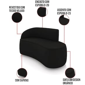 O Sofá 2 Lugares Orgânico Morgan de 140 cm, é a combinação perfeita de conforto e estilo. Com uma estrutura robusta de madeira de eucalipto e MDF, este sofá garante durabilidade e resistência. Os assentos e encostos são fixos, o encosto é preenchido com espuma D-20, proporcionando suporte ideal para suas costas, enquanto o assento com espuma D-23 oferece uma experiência de assento firme e aconchegante. O elegante revestimento em Veludo na sofisticada cor Preto é uma escolha que combina conforto com um toque de modernidade. O design orgânico remete às formas encontradas na natureza como ondas, folhas ou conchas que além de se moldarem ao corpo humano, evocam uma sensação de calma e equilíbrio. Seu formato curvo e sem braços traz um toque de modernidade, permitindo que o sofá se encaixe harmoniosamente em diversos estilos de decoração, desde o minimalista até o mais ousado. A fluidez das linhas cria um ambiente acolhedor e convidativo, perfeito para qualquer ocasião. As sapatas plásticas são pequenas proteções colocadas na base dos pés do sofá para evitar que eles risquem ou danifiquem o chão. Além de proteger o piso, essas sapatas ajudam a distribuir o peso do sofá de maneira mais uniforme. Seja para receber amigos, relaxar após um dia longo ou simplesmente adicionar um toque de elegância ao seu lar, o Sofá Orgânico é a escolha ideal. Não perca a oportunidade de elevar a decoração da sua casa com esta peça única. Adquira já o seu e descubra o que é conforto e estilo em um só lugar! OBSERVAÇÃO IMPORTANTE: A entrega é realizada no endereço informado, não realizamos o transporte para andares superiores, como subir escadas, elevadores ou guinchos. Não realizamos montagens, desmontagens ou instalações. Todos esses serviços são de responsabilidade do comprador.Dimensões do Produto: Altura Total: 80 cm Largura Total: 140 cm Profundidade Total: 70 cm Tamanho dos pés: 5 cm Peso: 21 kg Outras Medidas: Altura Interna do Encosto: 40 cm Altura do Chão ao Assento: 45 cm Largura Interna do Assento: 140 cm Profundidade Interna do Assento: 55 cm Especificações do Produto: Estrutura: Madeira Eucalipto e MDF Espuma do Encosto: D-23 Espuma do Assento: D-20 Percintas Elásticas Revestimento: Veludo Possui Pés: Sim Tipo de Pés: Sapata Plástica PVC Peso Suportado: Até 180 kg Quantidade de Lugares: 2 Lugares Tipo de Encosto: Fixo Tipo de Assento: Fixo É retrátil: Não É reclinável: Não Diferenciais: Design Orgânico Montagem: Produto entregue montado. Garantia: 90 dias contra defeito de fabricação Instruções de Limpeza: Utilizar um pano limpo e levemente úmido Você irá Receber: 01 Sofá Entregue em: 01 Volume