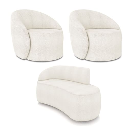 O Kit Sofá 2 Lugares Orgânico 140cm Morgan e 2 Poltronas Lua é um verdadeiro convite ao relaxamento! Ele possui um design orgânico que remete às formas encontradas na natureza que além de se moldar ao corpo humano, evoca uma sensação de calma e equilíbrio criando um espaço acolhedor e relaxante. O revestimento desse maravilhoso conjunto conta com um tecido extremamente elegante no Bouclê, suportando em média até 180 kg de peso, podendo ser utilizado por pessoas de diferentes biotipos. A Poltrona Lua contém uma simetria artística e curvas suaves, ela contém uma Base Giratória com giro em 360 graus e uma estrutura em madeira de reflorestamento eucalipto, que garante a resistência e a sustentabilidade do produto. Ela tem um acabamento reforçado e espuma de qualidade D23, que oferece maciez e conforto. Ela contém detalhes de costura no encosto e um assento cilíndrico arredondado resultando em um acabamento perfeito conferindo muito mais valor e personalizado ao produto, oferecendo maior liberdade de movimento ao cliente. O Sofá Morgan por sua vez é uma combinação perfeita de conforto e estilo. Com uma estrutura robusta de madeira de eucalipto e MDF, este sofá garante durabilidade e resistência. Os assentos e encostos são fixos, o encosto é preenchido com espuma D-20, proporcionando suporte ideal para suas costas, enquanto o assento com espuma D-23 oferece uma experiência de assento firme e aconchegante. Seu formato curvo e sem braços traz um toque de modernidade, permitindo que o sofá se encaixe harmoniosamente em diversos estilos de decoração, desde o minimalista até o mais ousado. As sapatas plásticas são pequenas proteções colocadas na base dos pés do sofá para evitar que eles risquem ou danifiquem o chão. Além de proteger o piso, essas sapatas ajudam a distribuir o peso do sofá de maneira mais uniforme. Esse lindo conjunto pode ser utilizado em salas de estar, recepções, escritórios, lojas, espaços comerciais, ou qualquer outro espaço que você queira decorar com estilo e bom gosto. O kit Sofá Morgan e 2 Poltronas Lua é um produto que vai fazer a diferença na sua decoração e no seu bem-estar. Ele vai trazer charme, conforto e durabilidade para o seu ambiente. Corra e garanta a sua agora mesmo!