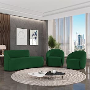 O Kit Sofá 2 Lugares Orgânico 140cm Morgan e 2 Poltronas Lua é um verdadeiro convite ao relaxamento! Ele possui um design orgânico que remete às formas encontradas na natureza que além de se moldar ao corpo humano, evoca uma sensação de calma e equilíbrio criando um espaço acolhedor e relaxante. O revestimento desse maravilhoso conjunto conta com um tecido extremamente elegante no Suede Verde, suportando em média até 180 kg de peso, podendo ser utilizado por pessoas de diferentes biotipos. A Poltrona Lua contém uma simetria artística e curvas suaves, ela contém uma Base Giratória com giro em 360 graus e uma estrutura em madeira de reflorestamento eucalipto, que garante a resistência e a sustentabilidade do produto. Ela tem um acabamento reforçado e espuma de qualidade D23, que oferece maciez e conforto. Ela contém detalhes de costura no encosto e um assento cilíndrico arredondado resultando em um acabamento perfeito conferindo muito mais valor e personalizado ao produto, oferecendo maior liberdade de movimento ao cliente. O Sofá Morgan por sua vez é uma combinação perfeita de conforto e estilo. Com uma estrutura robusta de madeira de eucalipto e MDF, este sofá garante durabilidade e resistência. Os assentos e encostos são fixos, o encosto é preenchido com espuma D-20, proporcionando suporte ideal para suas costas, enquanto o assento com espuma D-23 oferece uma experiência de assento firme e aconchegante. Seu formato curvo e sem braços traz um toque de modernidade, permitindo que o sofá se encaixe harmoniosamente em diversos estilos de decoração, desde o minimalista até o mais ousado. As sapatas plásticas são pequenas proteções colocadas na base dos pés do sofá para evitar que eles risquem ou danifiquem o chão. Além de proteger o piso, essas sapatas ajudam a distribuir o peso do sofá de maneira mais uniforme. Esse lindo conjunto pode ser utilizado em salas de estar, recepções, escritórios, lojas, espaços comerciais, ou qualquer outro espaço que você queira decorar com estilo e bom gosto. O kit Sofá Morgan e 2 Poltronas Lua é um produto que vai fazer a diferença na sua decoração e no seu bem-estar. Ele vai trazer charme, conforto e durabilidade para o seu ambiente. Corra e garanta a sua agora mesmo! OBSERVAÇÃO IMPORTANTE: A entrega é realizada no endereço informado, não realizamos o transporte para andares superiores, como subir escadas, elevadores ou guinchos. Não realizamos montagens, desmontagens ou instalações. Todos esses serviços são de responsabilidade do comprador. Dimensões da Poltrona: Altura Total: 85 cm Largura Total: 91 cm Profundidade Total: 93 cm Altura do Encosto: 42 cm Largura do Assento: 62 cm Profundidade do Assento: 63 cm Altura do Assento: 40 cm Altura do chão ao Assento: 45 cm Largura do encosto: 87 cm Altura dos Pés: 5 cm Peso: 30 kg Dimensões do Sofá: Altura Total: 80 cm Largura Total: 140 cm Profundidade Total: 70 cm Altura do Encosto: 40 cm Largura total livre do Assento: 140 cm Profundidade do Assento: 55 cm Altura dos Pés: 2 cm Altura do chão ao Assento: 45 cm Peso: 25 kg Especificações do Produto: Estrutura: Madeira Eucalipto Reflorestada e MDF Revestimento: Suede Material do Estofamento da Poltrona: D-23, Manta Acrílica e Percintas Elásticas Material do Estofamento do Sofá: Assento D-23; Encosto D-20 e Percintas Elásticas Quantidade de Lugares do Sofá : 2 Lugares Sofá Possui Braça: Não Peso Suportado: Até 180 kg Tipo de Pés: Poltrona com Base Giratória e Sapata Plástica PVC Material da Base da Poltrona: Aço Carbono Tipo de Encosto: Fixo Diferenciais: Design orgânico.Tecido de alta qualidade. Necessita de Montagem: Não Garantia: 90 dias contra defeito de fabricação Instruções de Limpeza: Utilizar um pano limpo e levemente úmido Você irá Receber: 02 Poltronas Giratória e 01 Sofá Orgânico - Entregue em: 02 Volumes