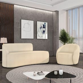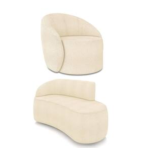 Sofá 2 Lugares Orgânico 140cm Morgan E Poltrona Lua Bouclê Bege