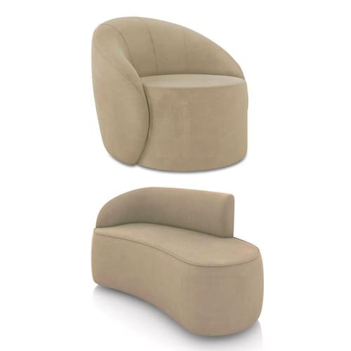 Sofá 2 Lugares Orgânico 140cm Morgan E Poltrona Lua Suede Marrom Rato D03 - D`rossi