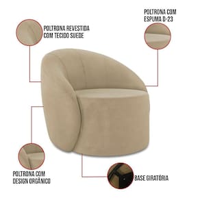 Sofá 2 Lugares Orgânico 140cm Morgan E Poltrona Lua Suede Marrom Rato D03 - D'rossi