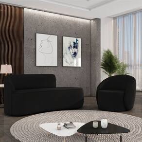 Sofá 2 Lugares Orgânico 140cm Morgan e Poltrona Lua Suede Preto D03 - D`Rossi