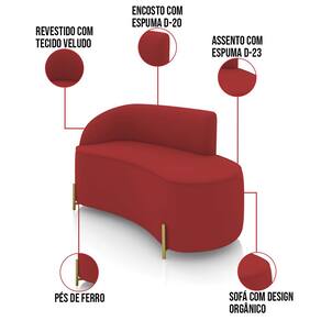 Sofá 2 Lugares Orgânico 140cm Pé Dourado Morgan Veludo D03 - D`Rossi - Marsala