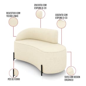 Sofá 2 Lugares Orgânico 140cm Pé Ferro Preto Morgan Linho D03 - D`Rossi - Bege