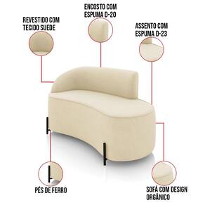 Sofá 2 Lugares Orgânico 140cm Pé Ferro Preto Morgan Suede D03 - D`Rossi - Bege