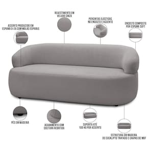 Tipo de produto: Sofá | Profundidade: 75 cm | Orientação do Sofá: na | ColorFamily: Cinza | Unidades por kit: 1 | Material do estofamento: Veludo | Material de enchimento do encosto: Encosto composto por espuma soft. | OriginState: PR | Densidade da espuma do assento: Espumas do assento D-26 e com molas espirais. | Cor: Cinza | Requer montagem: Não | Formato do sofá: Sofá | Estilo: Moderno | Color: Cinza | Peso máximo suportado: 100 kg | Fabricante: Lyam Decor | ColorSupplier: Cinza | ProductContents: 01 Sofá | OriginCountry: Brasil | Model: Carmen | Peso: 65 Kg | Altura: 83 cm | Mecanismo de abertura do produto: na | ColorSimple: Cinza | Linha: Sala de Estar | Largura: 140 cm | ProductWidth: 140 cm | ProductInstructions: Produto para uso em ambiente interno, nao devendo ficar exposto ao sol, calor e umidade excessivos. | ProductWeight: 65 kg | Cor dos pés: Castanho | Desenho do tecido: NA | Material: Madeira de eucalipto, Espuma, Chapas em MDF. | MaterialFamily: Madeira, Espuma, MDF | ProductLength: 75 cm | ProductWarranty: 90 dias após o recebimento do produto | ProductHeight: 83 cm | SizeDescription: Altura: 83 cm x Largura: 140 cm x Profundidade: 75 cm