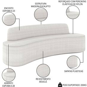 O impressionante Sofá 2 Lugares para Sala de Estar Living 150cm Koane D06 Bouclê Off White, da Mpozenato, é o estofado perfeito para elevar seu espaço de convivência! Projetado com um toque moderno, esse sofá curvo apresenta estilo e funcionalidade, o que o torna indispensável para qualquer casa contemporânea.