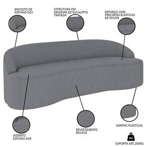 Com design curvo e incrivelmente moderno, o Sofá 2 Lugares para Sala de Estar Living 150cm Theo D06 Bouclê Cinza, da Mpozenato, é ideal para a sua sala de estar ou living, pois é uma ótima opção para quem busca um estofado confortável, sem abrir mão do estilo e funcionalidade.