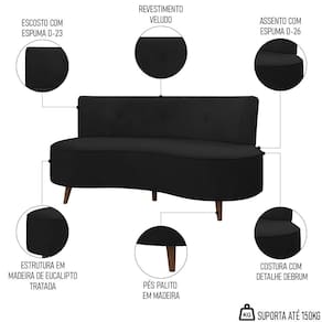 Sofá 2 Lugares para Sala Living 135cm Pés Palito Korah K04 Veludo Preto - Mpozenato