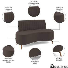 Moderno, elegante, versátil e funcional - esses são apenas alguns dos adjetivos que melhor definem o Sofá 2 Lugares para Sala Living 160cm Pés Palito Tamar Z08 Veludo Marrom, da Mpozenato.