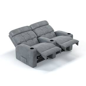 Sofá 2 Lugares Reclinável Elétrico Em Tecido Suede Com Massagem Linha Cinema - Cinza
