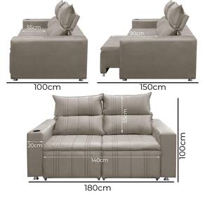 Sofá 2 lugares Retrátil e Reclinável Madri 1,80M - Veludo - Bege