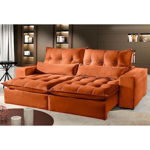 Sofá 2 lugares retrátil e reclinável máximo Veludo Com os estofados Móveis Mix você leva conforto e beleza para o seu lar. Seu design remete aconchego e você ainda leva lindas almofadas rineira.