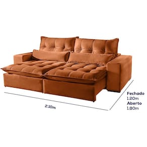Dimensões do produto montado: Altura: 105 cm Largura: 210cm Profundidade: 120 cm Peso: 73 kg Abertura: 180cm Módulos: 80cm Comprimento: 210cm Braços: 25cm
