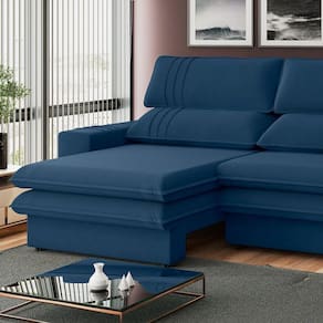 Sofá 2 Lugares Retrátil Noruega 180 Cm Veludo Pés Tabaco - D'rossi Cor Azul Marinho