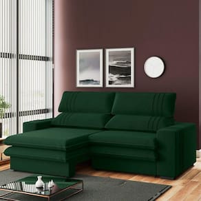 Sofá 2 Lugares Retrátil Noruega 180 Cm Veludo Verde Pés Tabaco - D'rossi