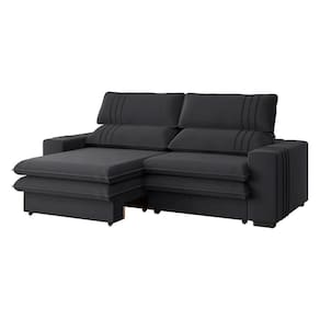 Sofá 2 Lugares Retrátil Noruega 270 Cm Veludo Grafite Pés Tabaco - D'rossi