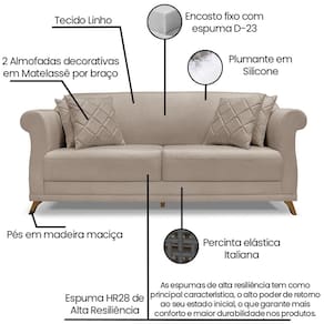 Modelo: Sofa 2 Lugares Retro Polo 180cm Com Almofada Linho