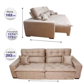 Sofá 2,02m Retrátil e Reclinável com Molas Cama inBox Confort Tecido Suede Velusoft Castor - Palha