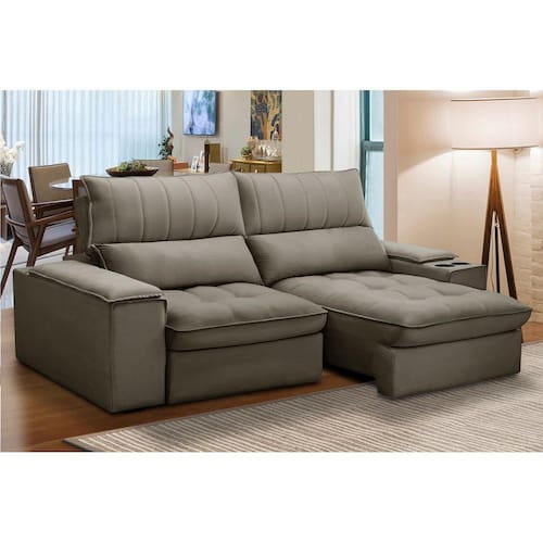 Proporcione o máximo de conforto para sua família e convidados, em qualquer ocasião.O Estofado Bariloche, possui assentos retráteis compostos por espuma D-26 + fibra siliconada, molas ensacadas, molas espirais e rodízios de silicone.Os encostos reclináveis, garantem um perfeito descanso, proporcionado através do seu reclino de 5 estágios, e almofadas do encosto compostas por 100% de fibra siliconada. Ideal para ambientes compactos e sofisticados, o Sofá Bariloche irá renovar a beleza da sua sala, assim como trazer muito conforto para você. Feito para espaços onde o conforto é primordial, ele é aconchegante e possui um design que vai elevar a decoração da sua sala para outro nível.Ele conta com porta copos, onde o braço almofadado pode ocultar e ficar à vista de acordo com o seu momento. Sua procura pelo sofá perfeito acabou, adquira já o seu!Detalhes TécnicosESTRUTURA: Madeira de lei (Eucalipto) devidamente tratada e aparelhada com reforços e cantoneiras e chapas em MDF.ENCOSTO: Reclinável por meio de catraca metálica de 5 estágios, composto por 100% de fibra siliconada.ASSENTO: Retrátil em tubo, composto por espuma D-26 e fibra siliconada. Molas ensacadas, molas espirais e rodízios de silicone.PERCINTAS: Elásticas no encosto e no assento, para maior resistência e durabilidade.BRAÇOS: Removíveis, com porta copos, compostos por espuma D-20.PÉS: Pés em madeira.ACABAMENTO: TNT preto para forração interna e externa.Medidas2,30 m (2 assentos ? peça única)75 kgAltura: 1,15 mProfundidade: 1,10 mProfundidade com assento aberto: 1,60 m(Obs.: Os pesos são aproximados)*ATENÇÃO:As cores podem sofrer variações de acordo com o monitor, iluminação do ambiente em que se encontra e até por sua percepção visual comparado ao ambiente residencial. por isso, as imagens são meramente ilustrativas. Todos os objetos decorativos não acompanham o produto.Verifique as dimensões do produto e certifique-se que o percurso que ele fará até o local de uso permite sua passagem.*ENTREGA:Móveis entregues desmontados, em local de fácil acesso, os entregadores não são autorizados a subir escadas, elevadores ou se utilizar de qualquer outro método alternativo para efetuar entregas. Estes procedimentos são tomados para segurança de todos.*MONTAGEM:A responsabilidade pela montagem e desmontagem é exclusivamente do comprador, recomendamos que a montagem/desmontagem seja feita por um profissional da área.Este produto acompanha kit de montagem + manual de instrução*CUIDADOS:Limpar apenas com pano levemente umedecido com água. Não utilizar qualquer outro tipo de produtos químicos ou abrasivos.*GARANTIA:A garantia é de 90 dias por defeitos de fabricação.Em caso de erro de montagem, uso inadequado do produto, a garantia não será acionada