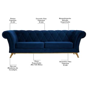 Altura: 77 cm | AssemblyRequired: Sim, sugerimos a contratação do nosso serviço de montagem (para os CEPs em que o serviço está dispon | Color: Azul Marinho | ColorFamily: Azul Marinho | ColorSimple: Azul Marinho | ColorSupplier: Azul Marinho | Cor: Azul Marinho | Gênero: Unisex | Largura: 230 cm | Manual: Sim | Marca: Domi | Material: Madeira Eucalipto | MaterialFamily: Madeira Eucalipto | Model: Império | Origem: | OriginCountry: | OriginState: PR | Peso: 45 kg | Peso Suportado: 120 Kg sem impacto. | ProductContents: 1 Sofá | ProductHeight: 77 | ProductInstructions: Produto para uso em ambiente interno, nao devendo ficar exposto ao sol, calor e umidade excessivos. | ProductLength: 87 | ProductWarranty: 90 dias após o do produto | ProductWeight: 45 | ProductWidth: 230 | Profundidade: 87 cm | Requere montagem: Sim | SizeDescription: 77 x 230 x 87 cm | SupplierSimpleName: Sofá 230cm 3 Lugares Base Madeira Império C-304 Veludo Azul Marinho - Domi | Tipo de : Fabricante