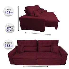 Sofá 2,32m Retrátil e Reclinável com Molas Cama inBox Confort Tecido Suede Velusoft Vinho
