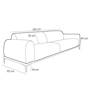 Largura do assento: sofá: 140 cm/ chaise: 115 cm.