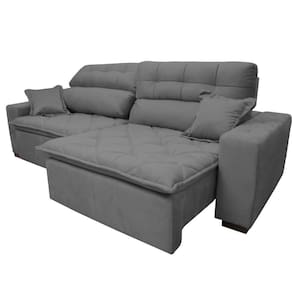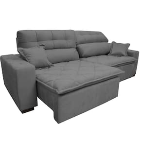 Sofá 2,42m Retrátil E Reclinável Com Molas Cama Inbox Confort Tecido Suede Velusoft Cinza