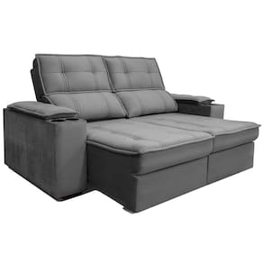 Características: Modelo: Ferrara Referência de modelo: 3016 Estrutura: Madeira de eucalipto Acabamento: Tratada e aparelhada, com reforços de cantoneiras. Chapas OSB Tecido: Veludo Percintas: Elásticas Assento: Percintas elásticas e espuma D23 Encosto: Percintas elásticas e fibras siliconadas mistas com flocos de espumas Braços: Espuma D20 Molas: Espirais e ensacadas Reclinagem: 5 estágios Capacidade de carga: até 100kg por assento Pés: Polipropilaeno Altura dos pés: 3 cm Diferenciais: Porta copos Forma de envio: Produto entregue em 2 volumes Marca: Gralha Azul