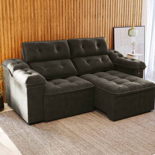 Sofá 260 cm Retrátil e Reclinável Sierra Cinza Escuro