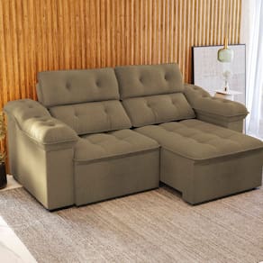 Para conforto e beleza em todos os momentos, aposte no Sofá Sierra 2,6m da Kappesberg. Robusto e confortável, ele é produzido em estrutura resistente, e seus diferenciais ficam por conta do sitema de rodízios e trilho de madeira, facilitando o manuseio. Além disso, com molas ensacadas, ele é retrátil e articulável em seis posições, proporcionando o ajuste conforme a sua preferência. Com espumas certificadas, os assentos, encostos e apoios de braço contam com enchimento em fibras e flocos de espumas, garantindo muito conforto. Medindo 1,33m de altura, 2,6m de largura e 1,32m de profundidade, o sofá é revestido em tecido Bouclé Cinza, garantindo um toque suave e gostoso, suportando até 120kg por assento. Os destaques ficam para para os puxes, que garantem beleza e um acabamento único.