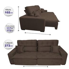 Sofá 2,72m Retrátil e Reclinável com Molas Cama inBox Confort Tecido Suede Velusoft Café - Marrom