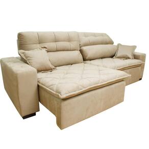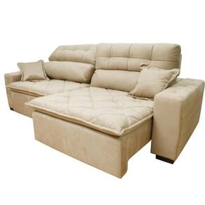 Sofá 2,92m Retrátil E Reclinável Com Molas Cama Inbox Confort Tecido Suede Velusoft Bege