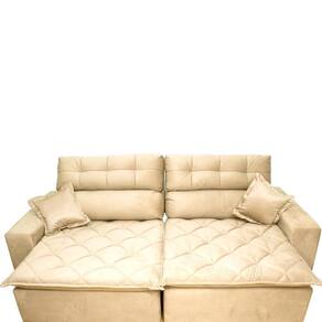 Sofá 2,92m Retrátil E Reclinável Com Molas Cama Inbox Confort Tecido Suede Velusoft Bege - Blush
